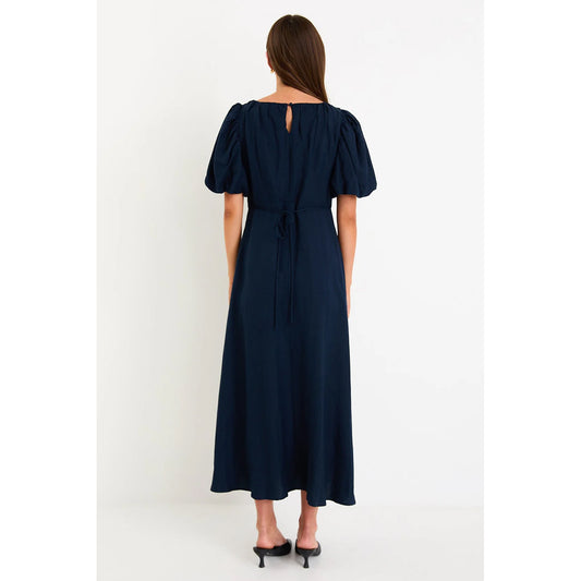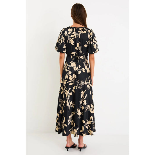 Stage Black Floral Satin Puff Sleeve Floaty Maxi Dress