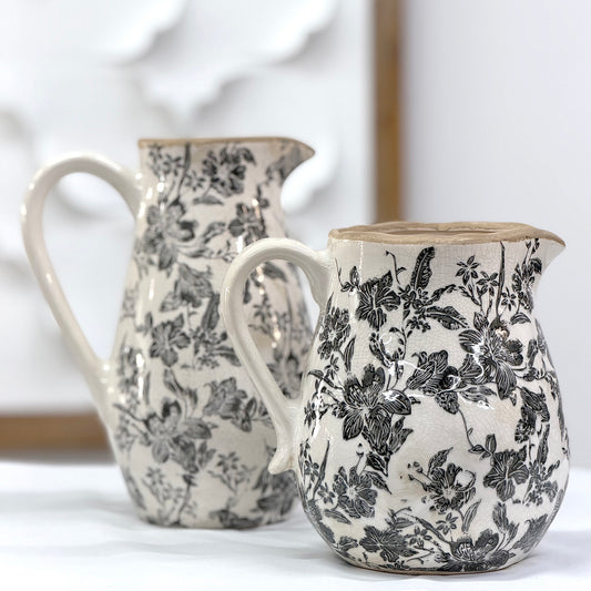 Black Floral Ceramic Jug