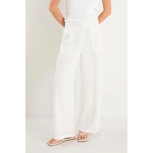 Guardian White Linen Viscose Pleat Front Wide Leg Pant