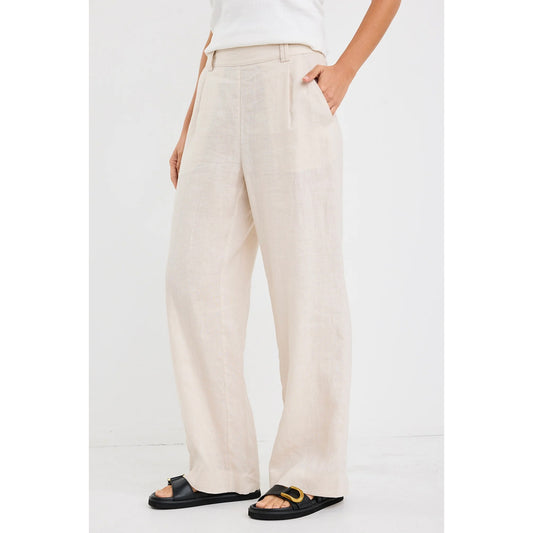 Bestow Pumice Linen Elastic Back Wide Leg Pants