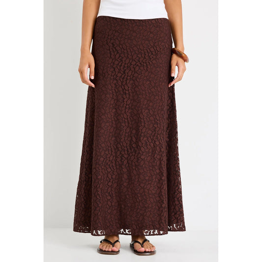 Zeus Chocolate Lace Bias Maxi Skirt