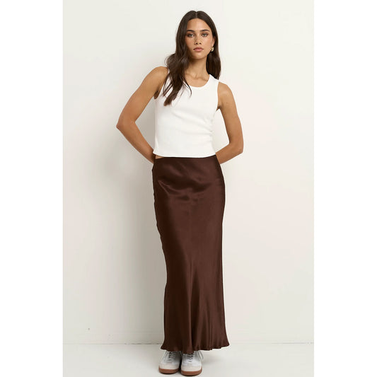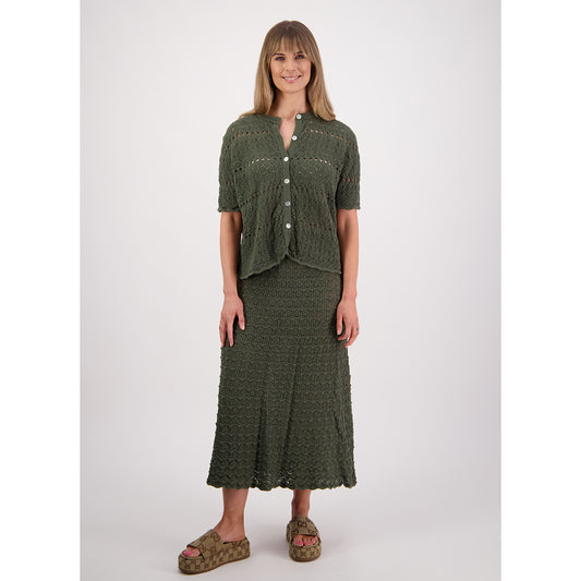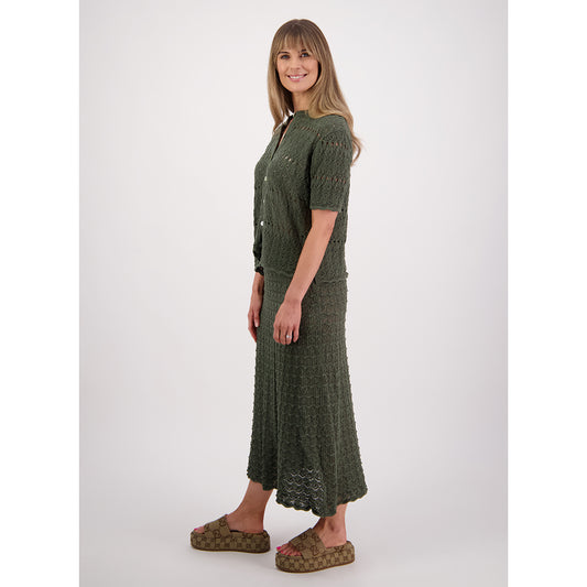 Notion Khaki Linen Blend Side Split Midi Skirt