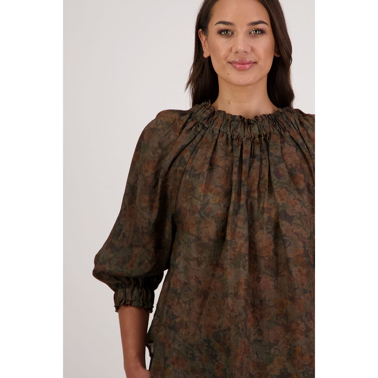 Crafted from 100% ramie, the Annabella Top is an iconic reversible style designed for versatility and ease. Wear it both ways to suit your look. Featuring soft gathering around the neckline, 3/4 length sleeves and a flattering longer-line silhouette, this piece is perfect for everyday dressing with a refined finish.