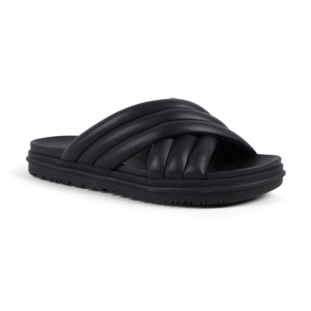 A sandal with a playful, sophisticated twist. Soft leather forms a crossover design, with each strap layered to create subtle texture and visual interest. The backing-free, slide-on style keeps it effortless, while the soft footbed and durable sole ensure comfort from morning to evening. Fun yet understated, it’s a versatile style you’ll reach for all season long.