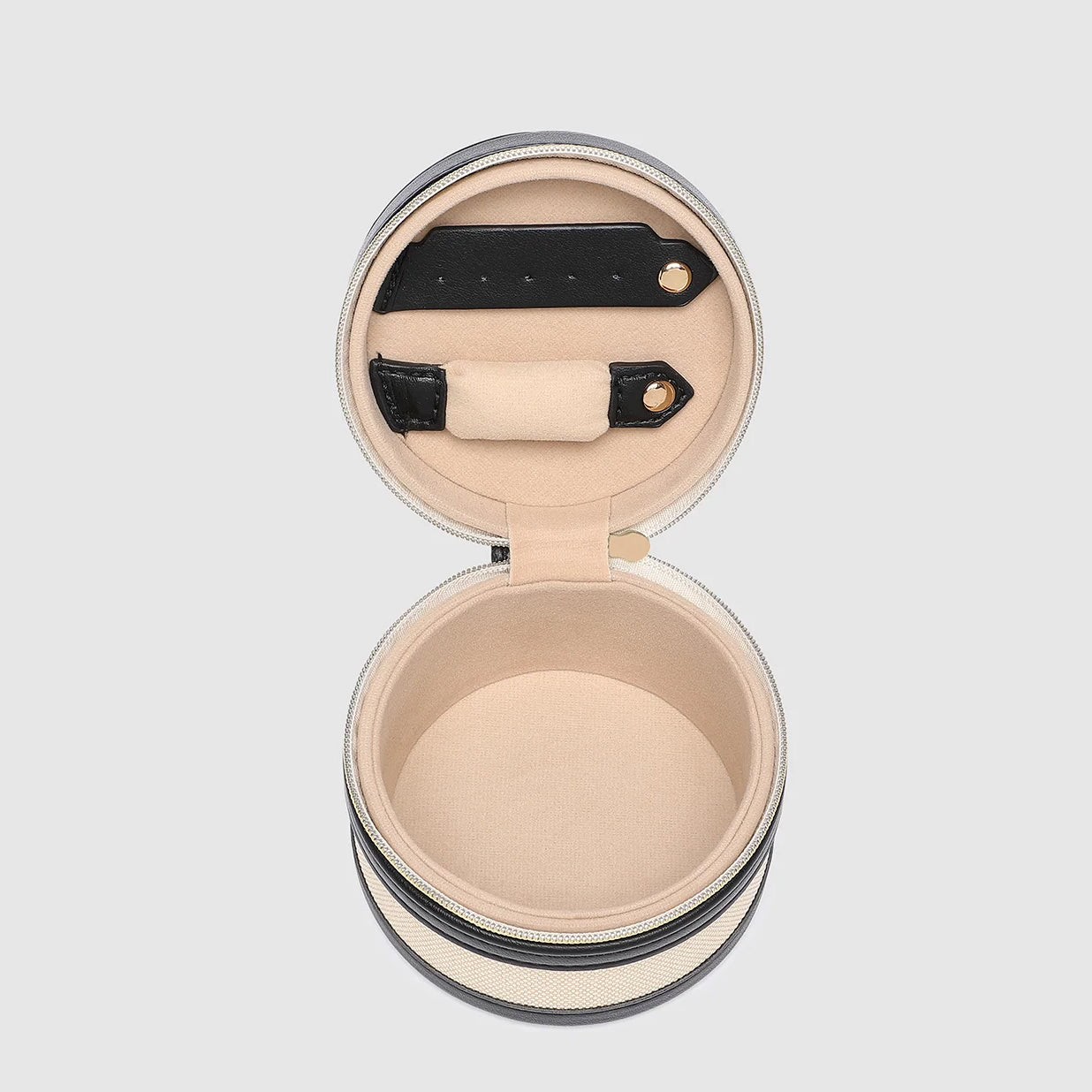 The Louenhide Loz Canvas Jewellery Box is a travel jewellery box designed for effortless organisation and timeless style. Thoughtfully made from smooth vegan leather and natural canvas, this portable jewellery organiser with a zipper blends functionality with a refined aesthetic. Inside, dedicated earring and necklace bands keep your pieces secure and tangle-free, whether you're heading off for a weekend escape or storing your favourites at home. Finished with a sleek silhouette and elevated by a subtle gold logo, the Loz Canvas Tan Jewellery Box is your go-to companion for storing sparkle on the move.