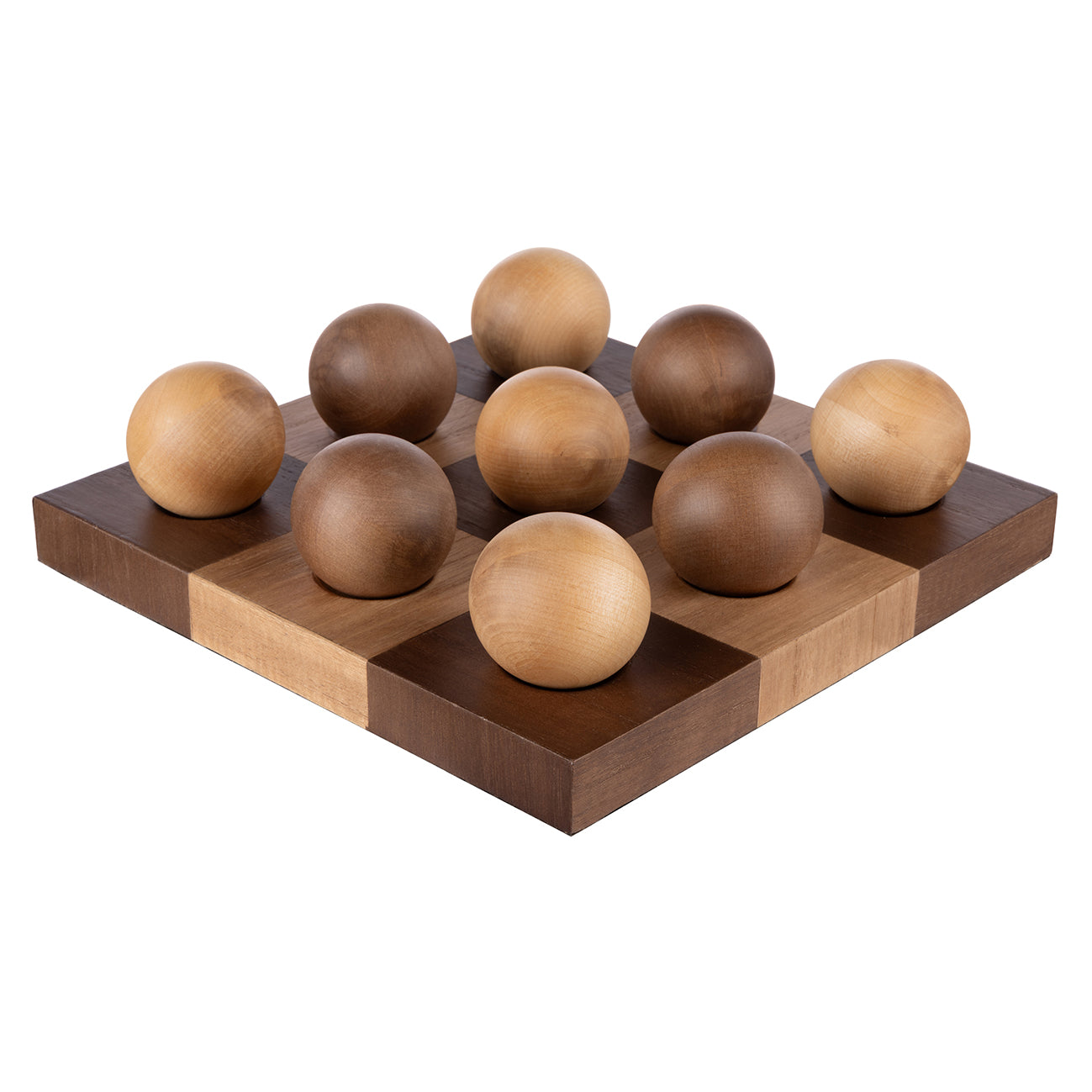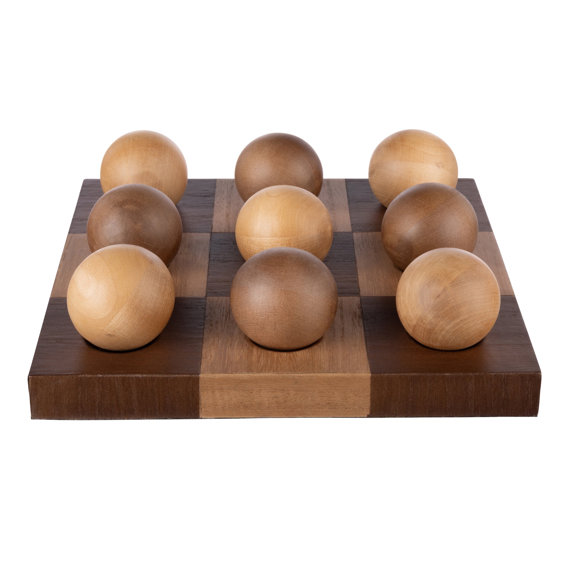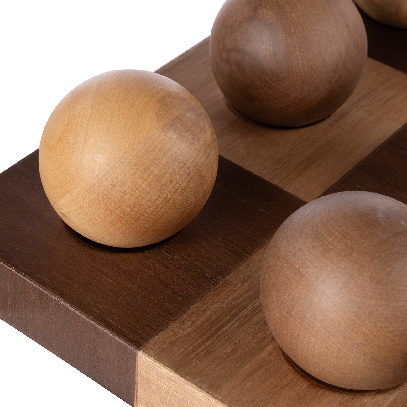 It speaks of a time when quality and craftsmanship were highly valued. Decorative sculptures are a simple but effective way to enhance any space. This Marshall Game Sculpture is crafted from parquetry wood for a statement look that celebrates the beauty of raw materials. It features contrasting wooden globes that can be re-arranged to your liking.