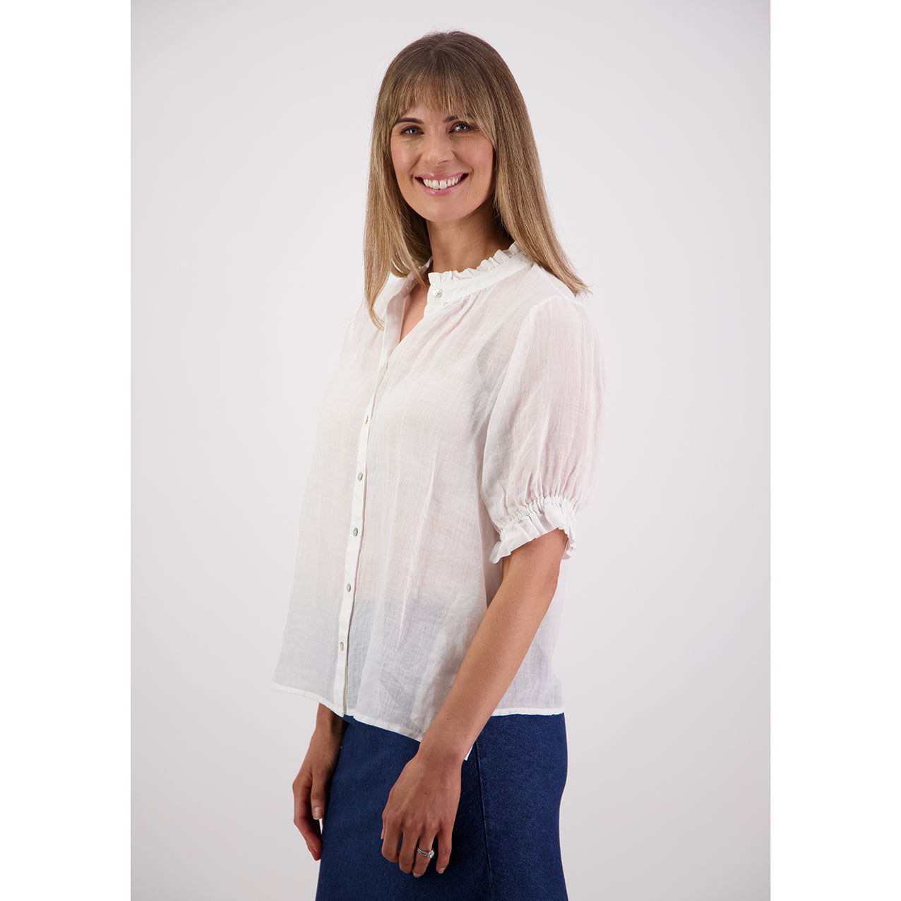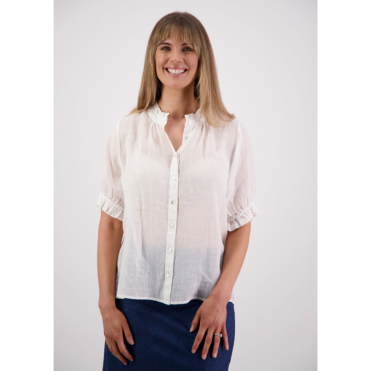 Pearly is the Ramie sister of our bestselling Sophie. A timeless shirt that's ready for any event with its unique ruffle neck design crafted from a beautiful Ramie in a range of classic and fashion colours. Going beyond fleeting trends, it's a trustworthy addition to your wardrobe.