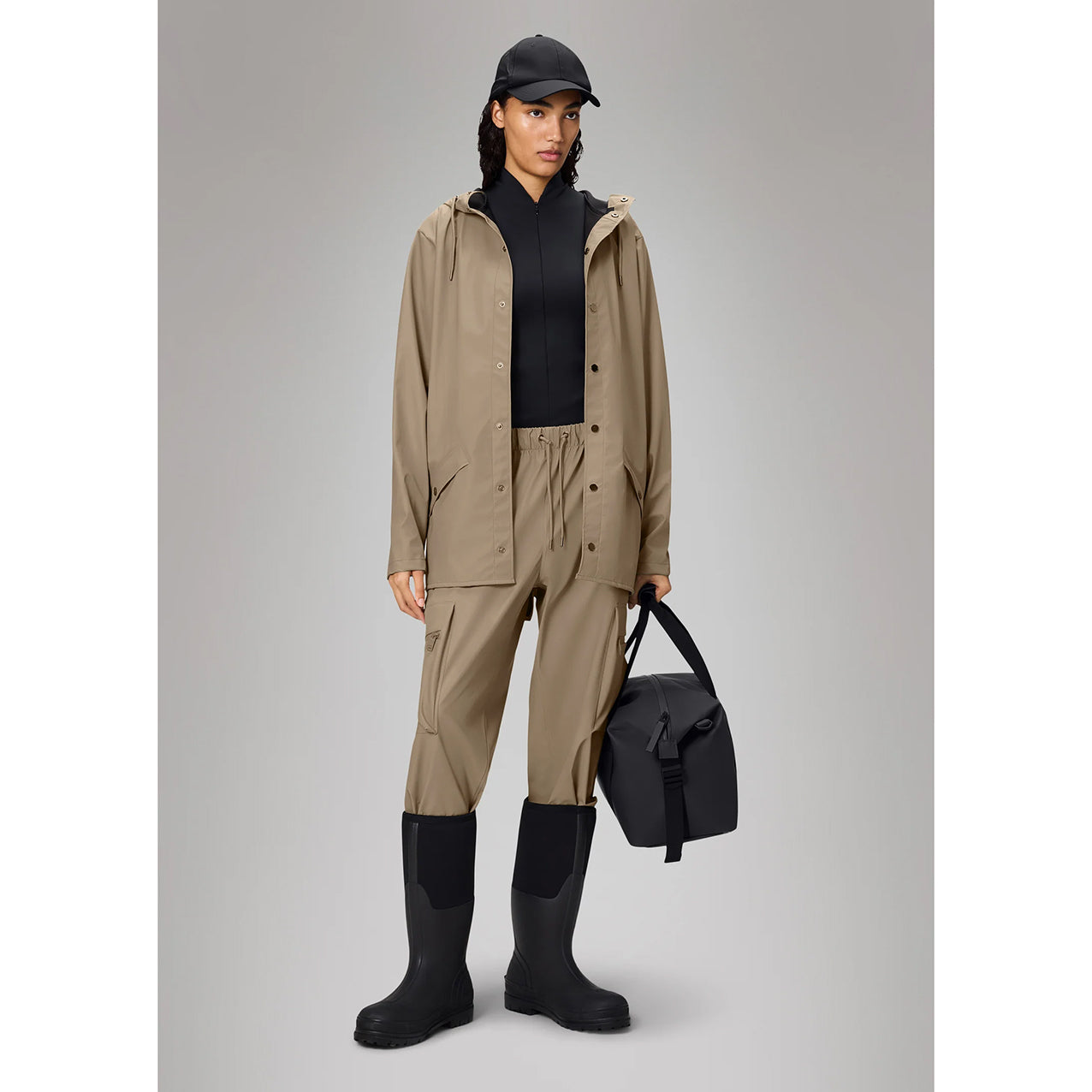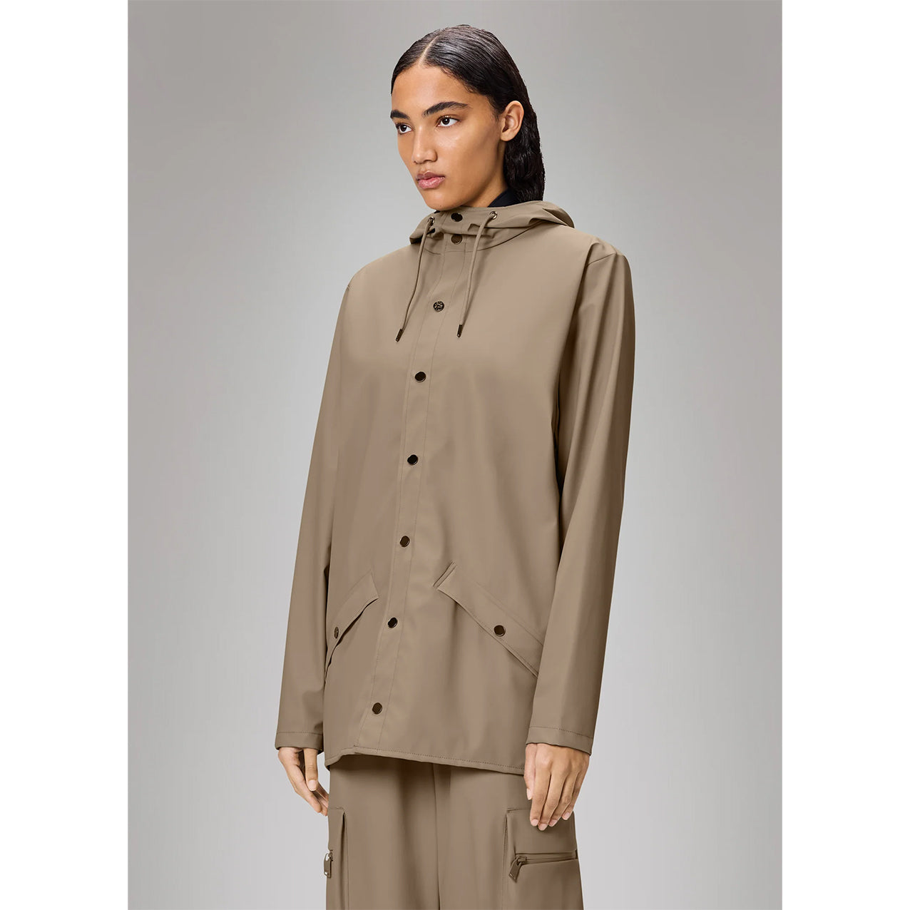 Jacket is cut from Rains' signature PU fabric and features welded seams. The finish is lightweight with a smooth feel.