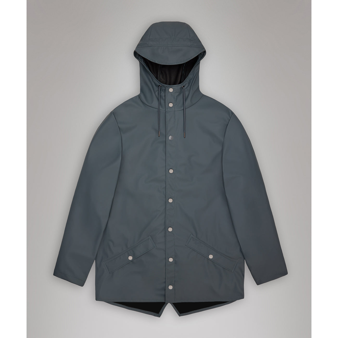 Jacket is cut from Rains' signature PU fabric and features welded seams. The finish is lightweight with a smooth feel.