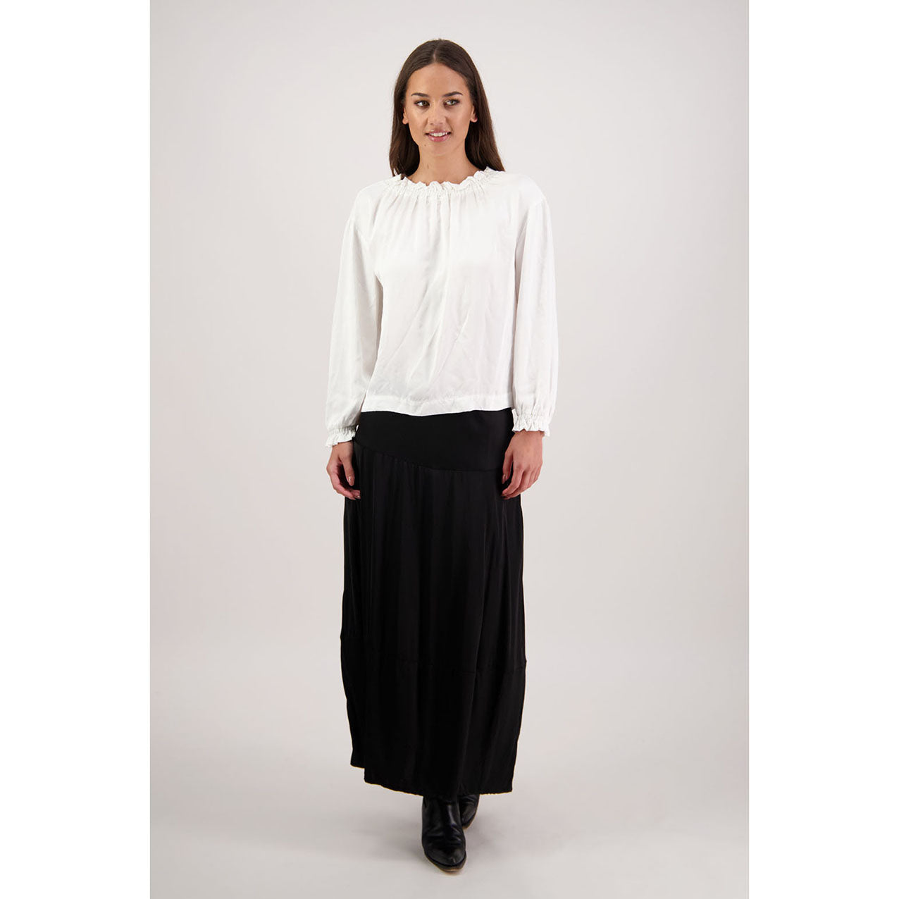Crafted from 100% viscose, the Rosetta Skirt is a versatile wardrobe favourite that pairs effortlessly with any outfit. Featuring an elasticated waist for comfort and a playful bubble hem, it offers a flattering, feminine silhouette that’s perfect for day-to-night styling.