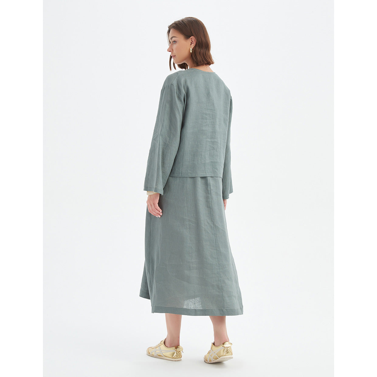 The Tie Front Top is designed with versatility in mind. Featuring a V-neckline, long sleeves, and an adjustable front tie that allows you to style it your way. Wear it closed as a standalone top, or leave it open as a lightweight layering piece over tanks and dresses. With its easy shape and timeless design, this piece is a wardrobe staple that works from season to season.